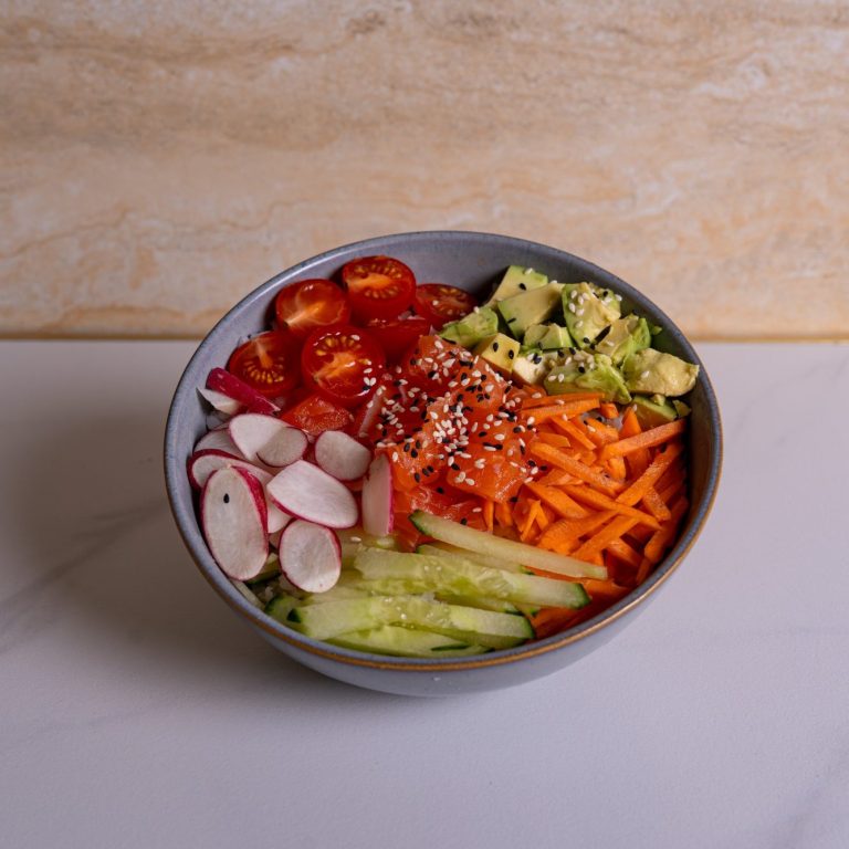 Ingrédients :Concombre,Carottes,Radis,Avocat,Mangue,Ananas,Tomate cerise.