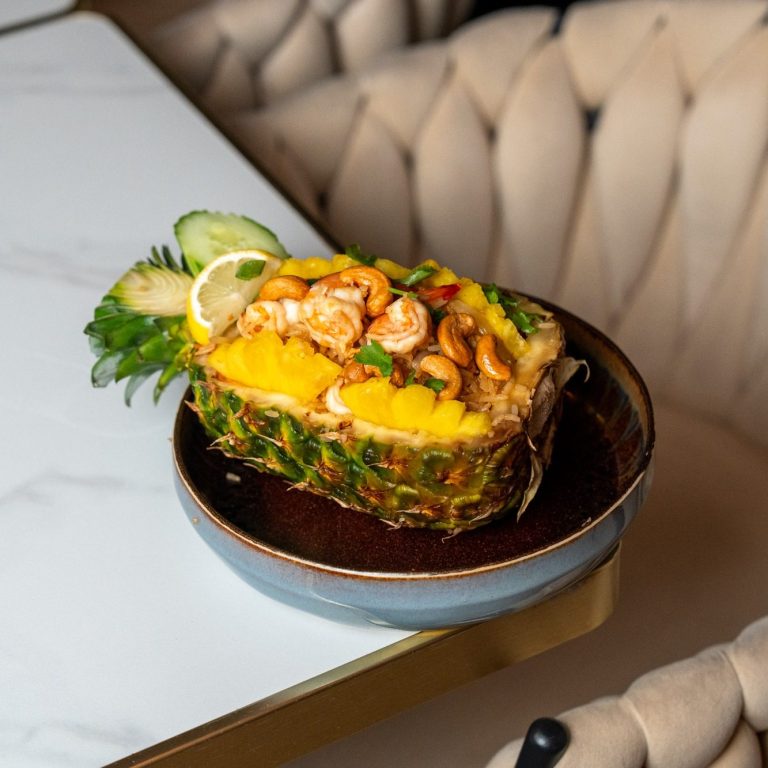 Un délicieux riz sauté thaïlandais, mêlant la douceur naturelle de l'ananas frais aux saveurs exquises des crevettes juteuses ou de poulet.